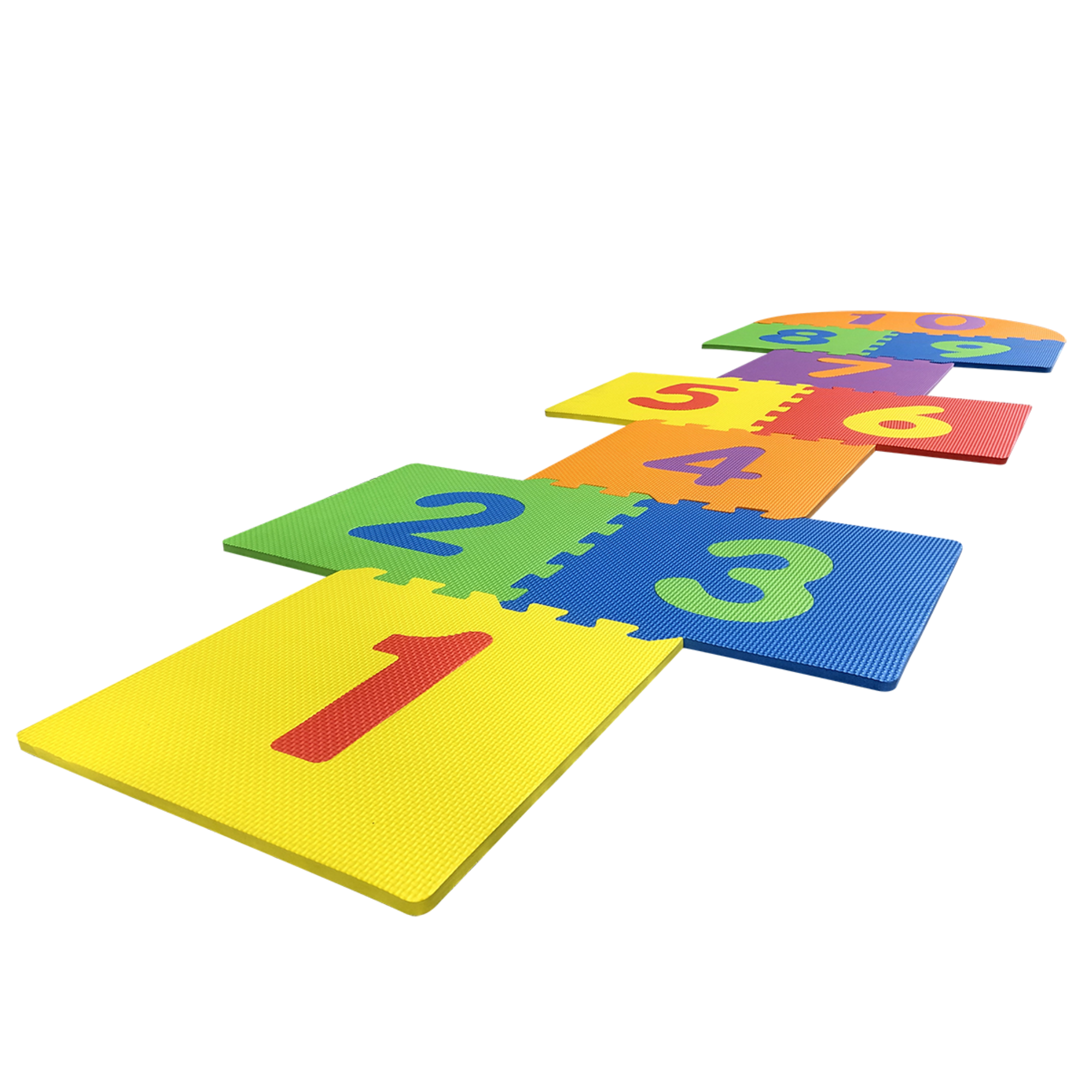 This Play Mat helps children reinforce balance and coordination skills. Soft, durable EVA foam squares with removable numbers. Water resistant, easy to clean, break apart and store. Use indoors or outdoors.