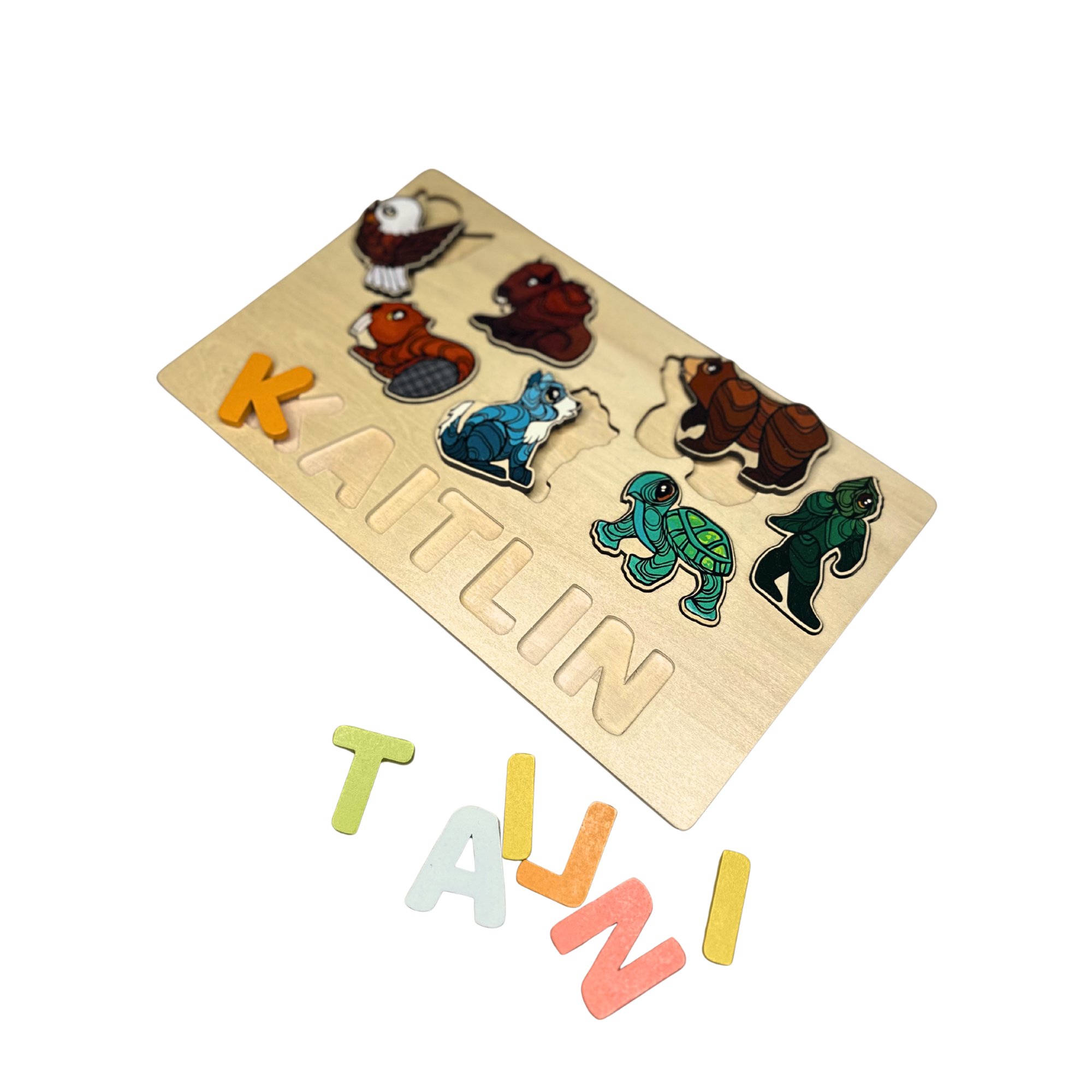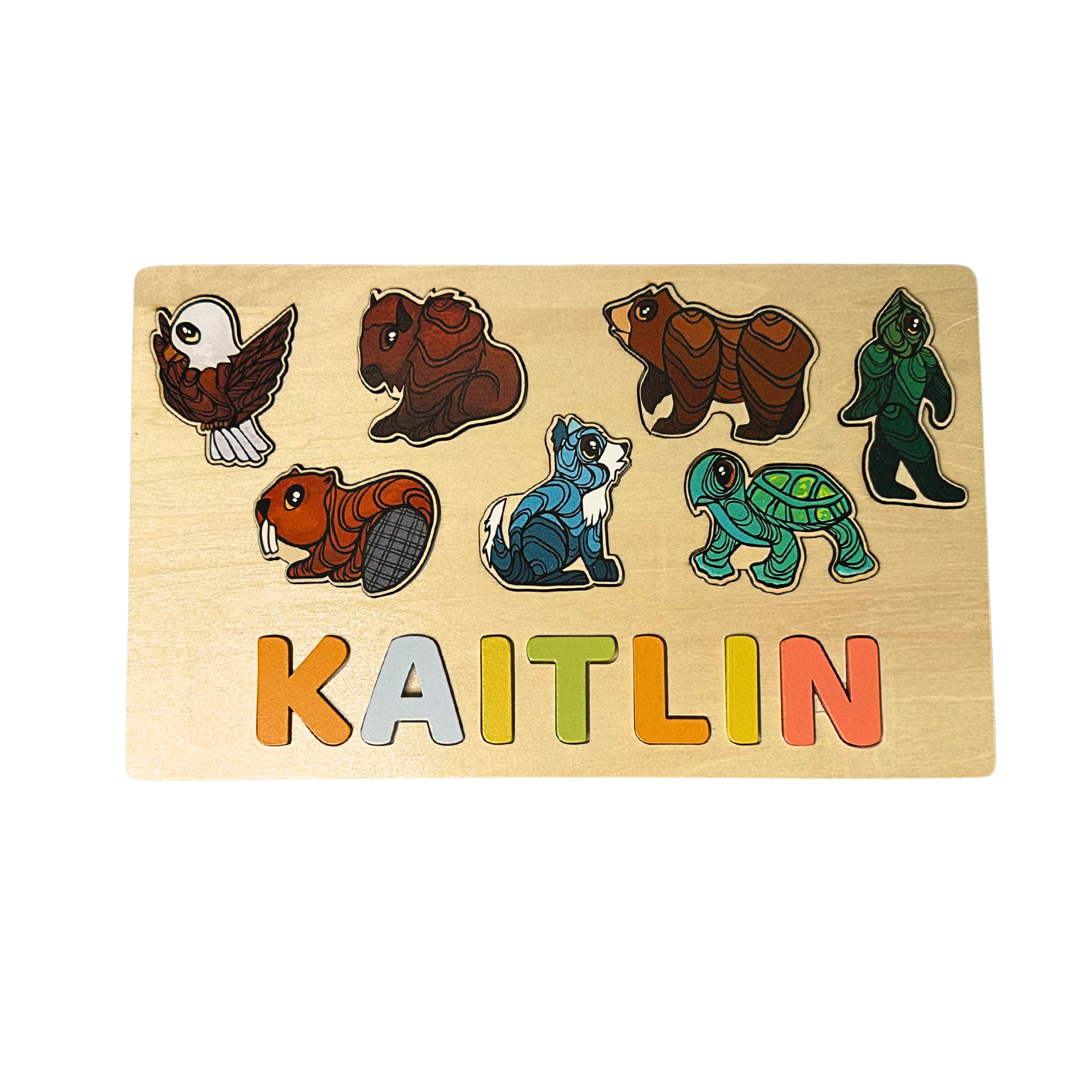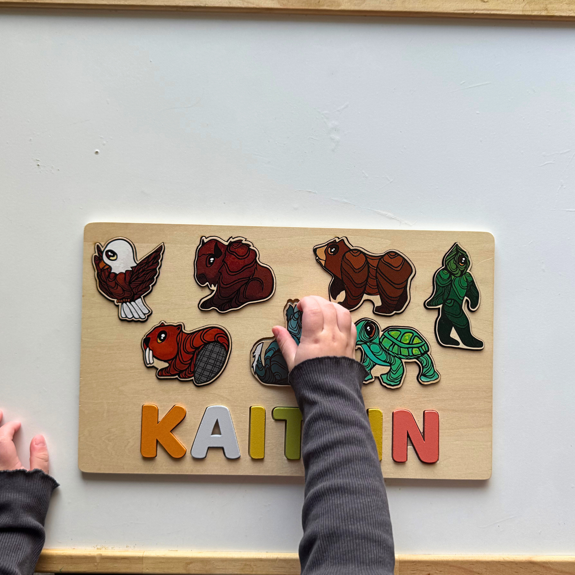 Our custom wooden puzzles are crafted in Canada. Our three puzzles, the Seven Teachings Puzzle, the Icons Puzzle, and the Fidget Puzzle, help children build problem-solving skills, focus, and imagination through play. Customize your puzzle with a name or word up to 7 letters. Wooden letters included.